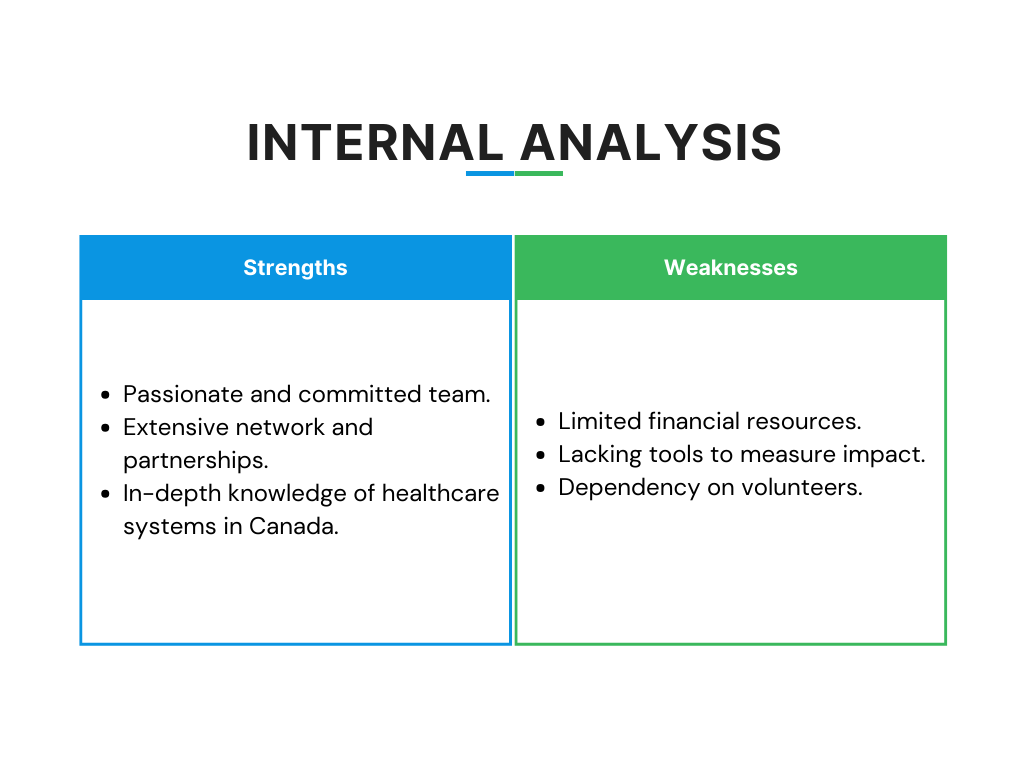 Strengths are internal factors that help the organization have a competitive advantage or provide unique capabilities/services/products. These can include resources, expertise, skills, or any other internal positive attributes that contribute to the organization’s success.